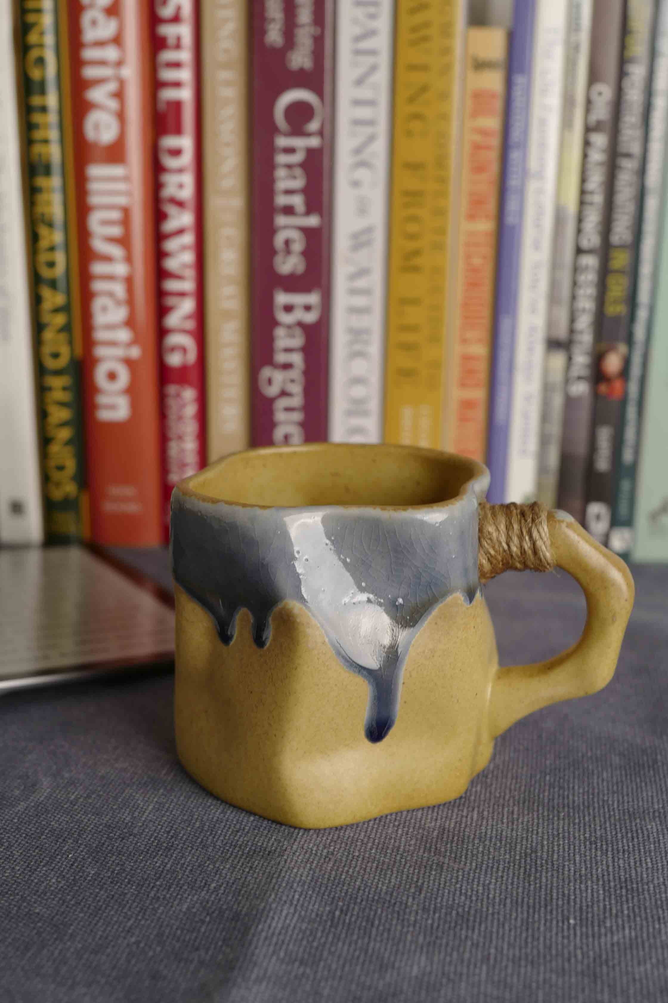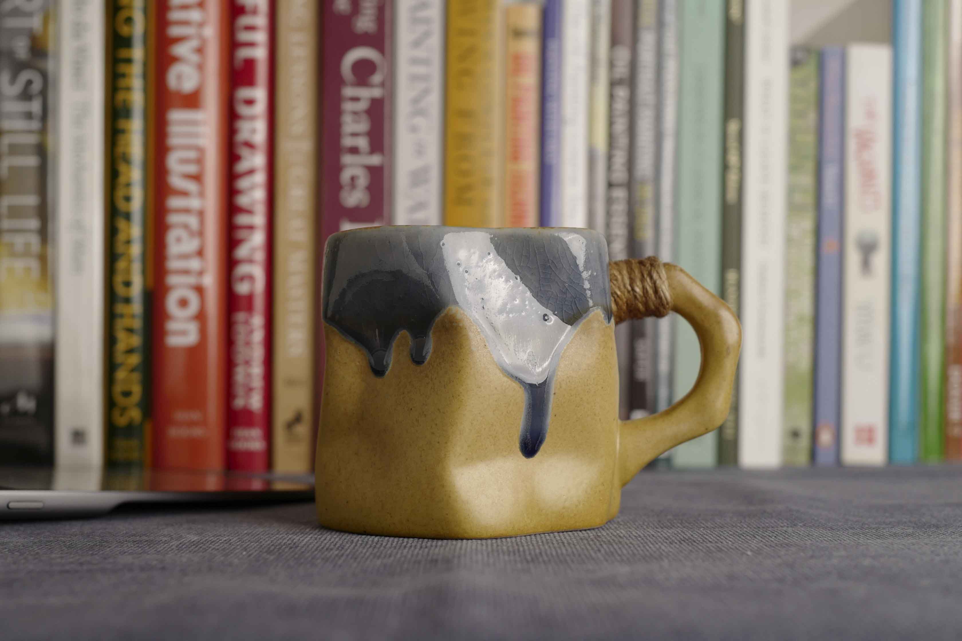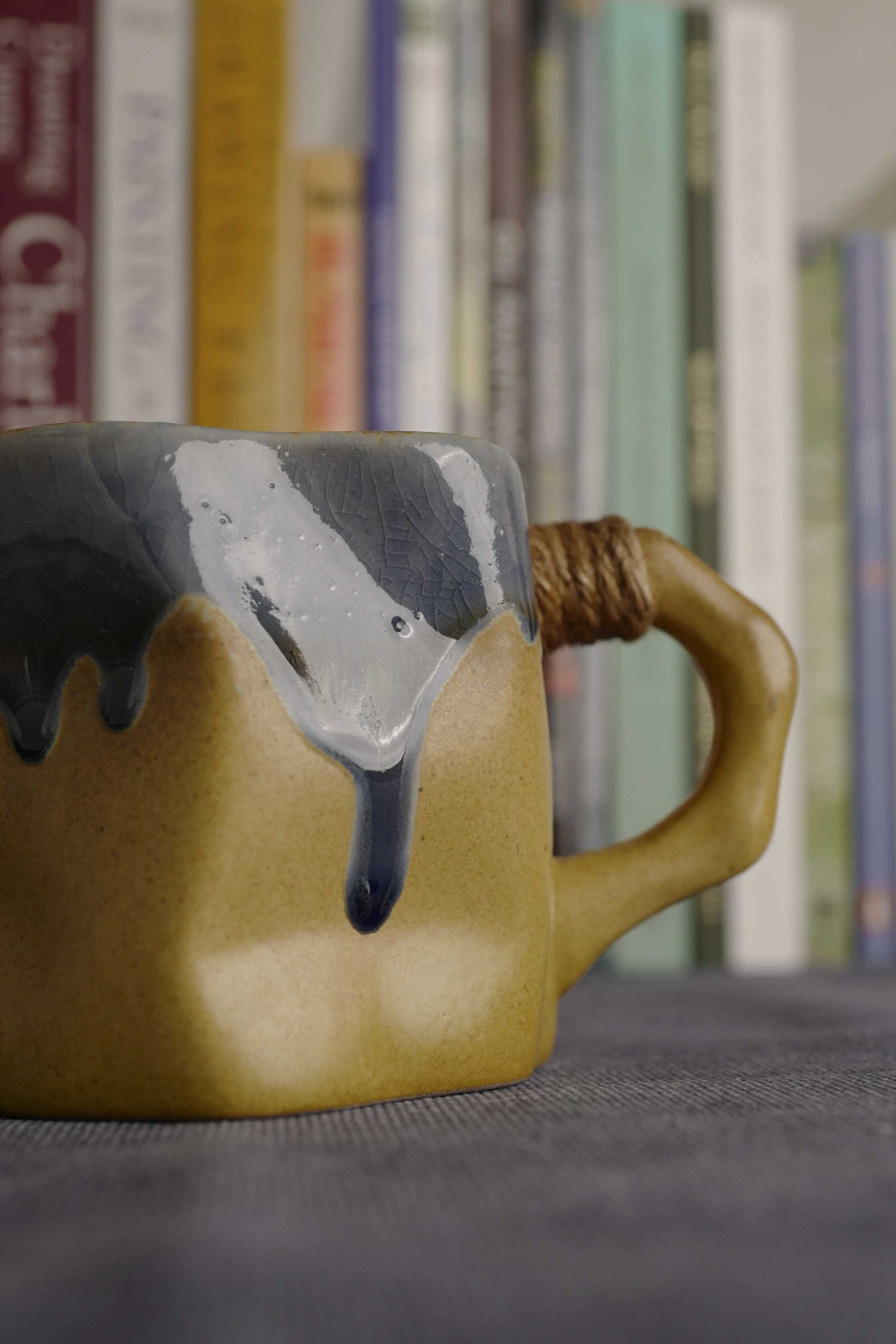 The mug’s irregular curvy shape and silky smooth surface embody the wabi-sabi philosophy—embracing imperfection, balance, and natural beauty. The unique rope-wrapped handle adds a tactile handmade detail and rustic charm.