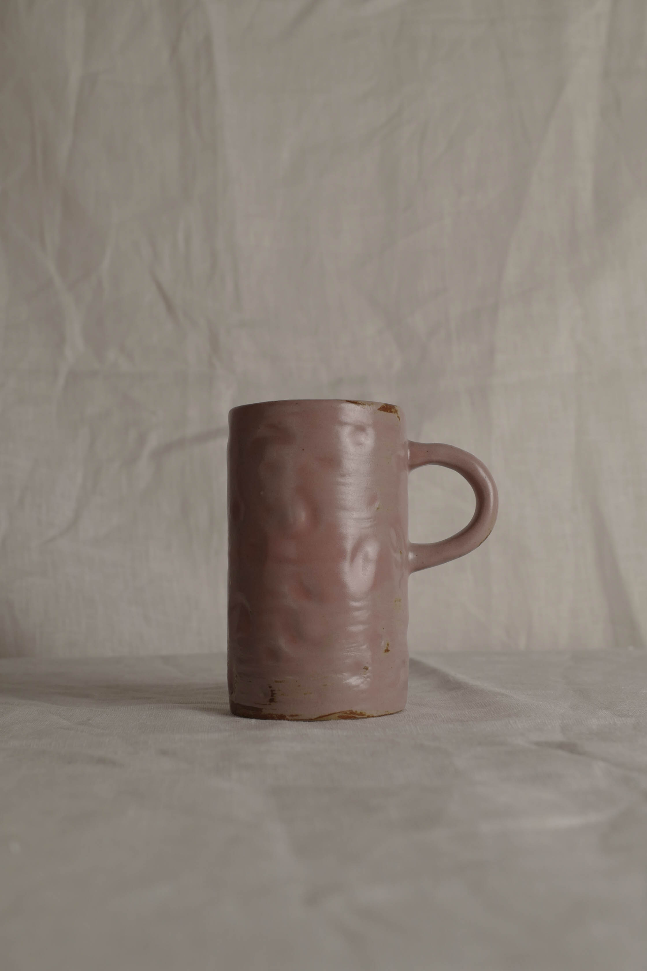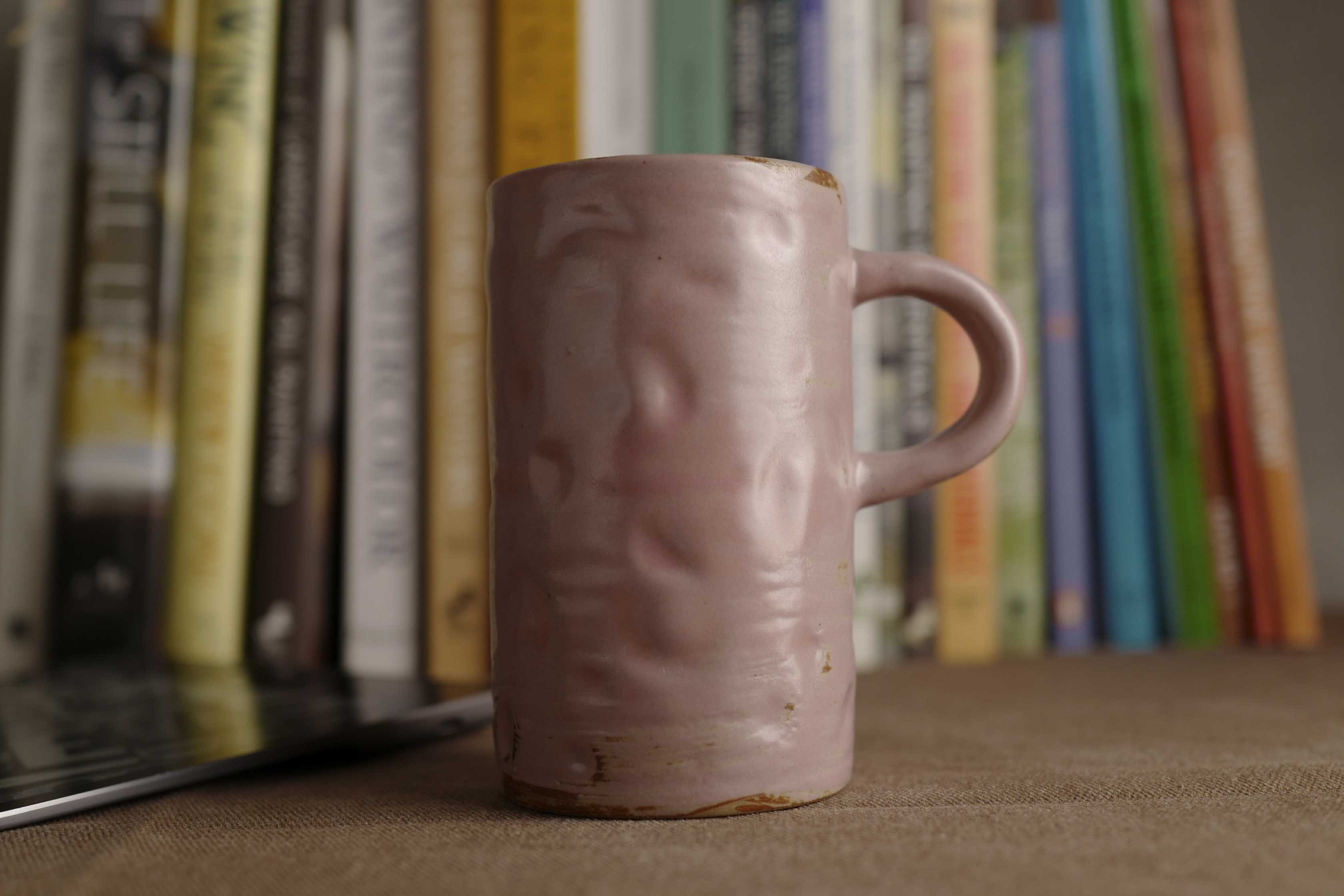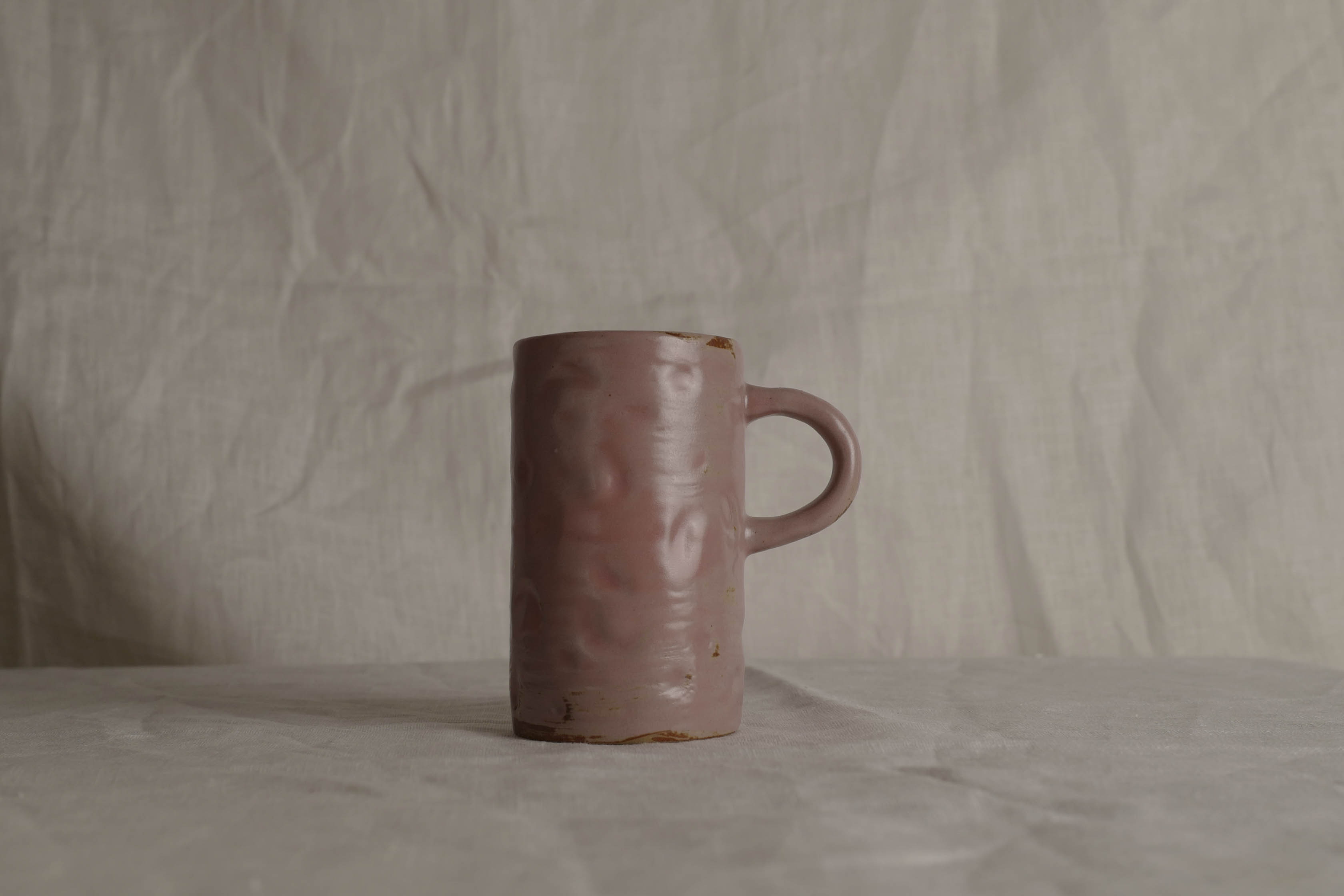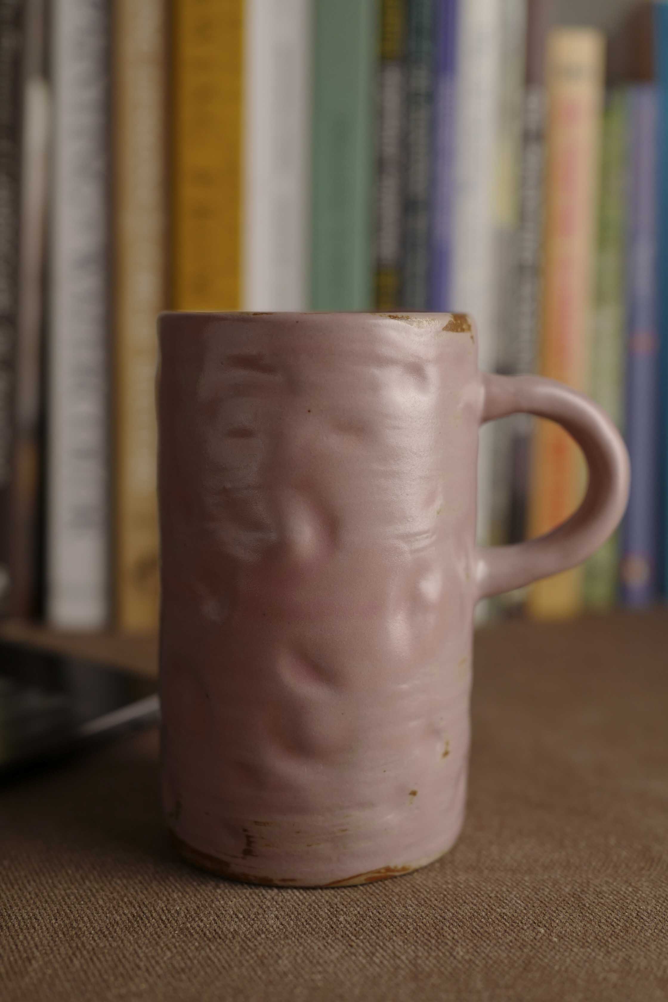 Handmade Raku Yaki Mug: Pink Stoneware, Japandi Coffee Cup