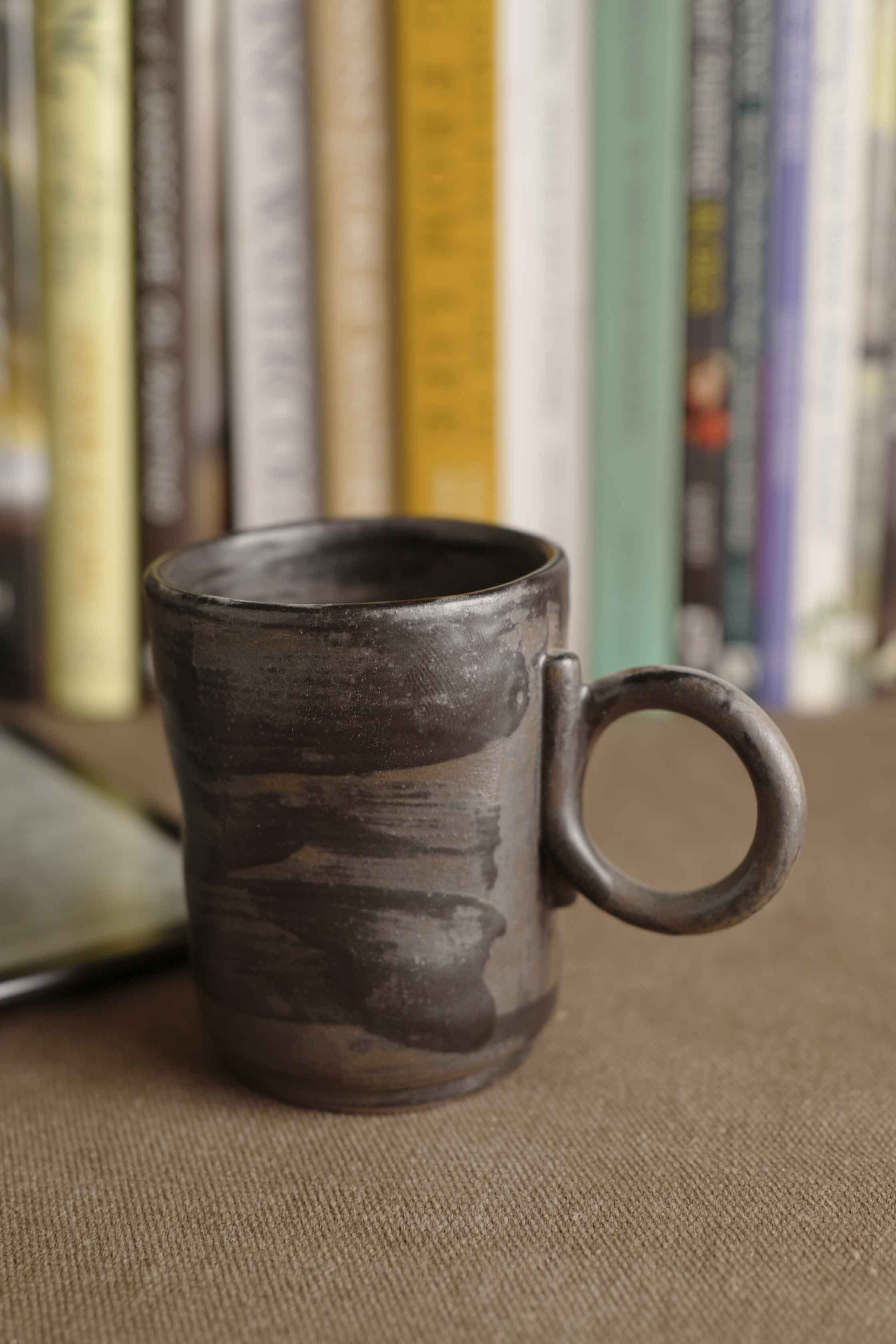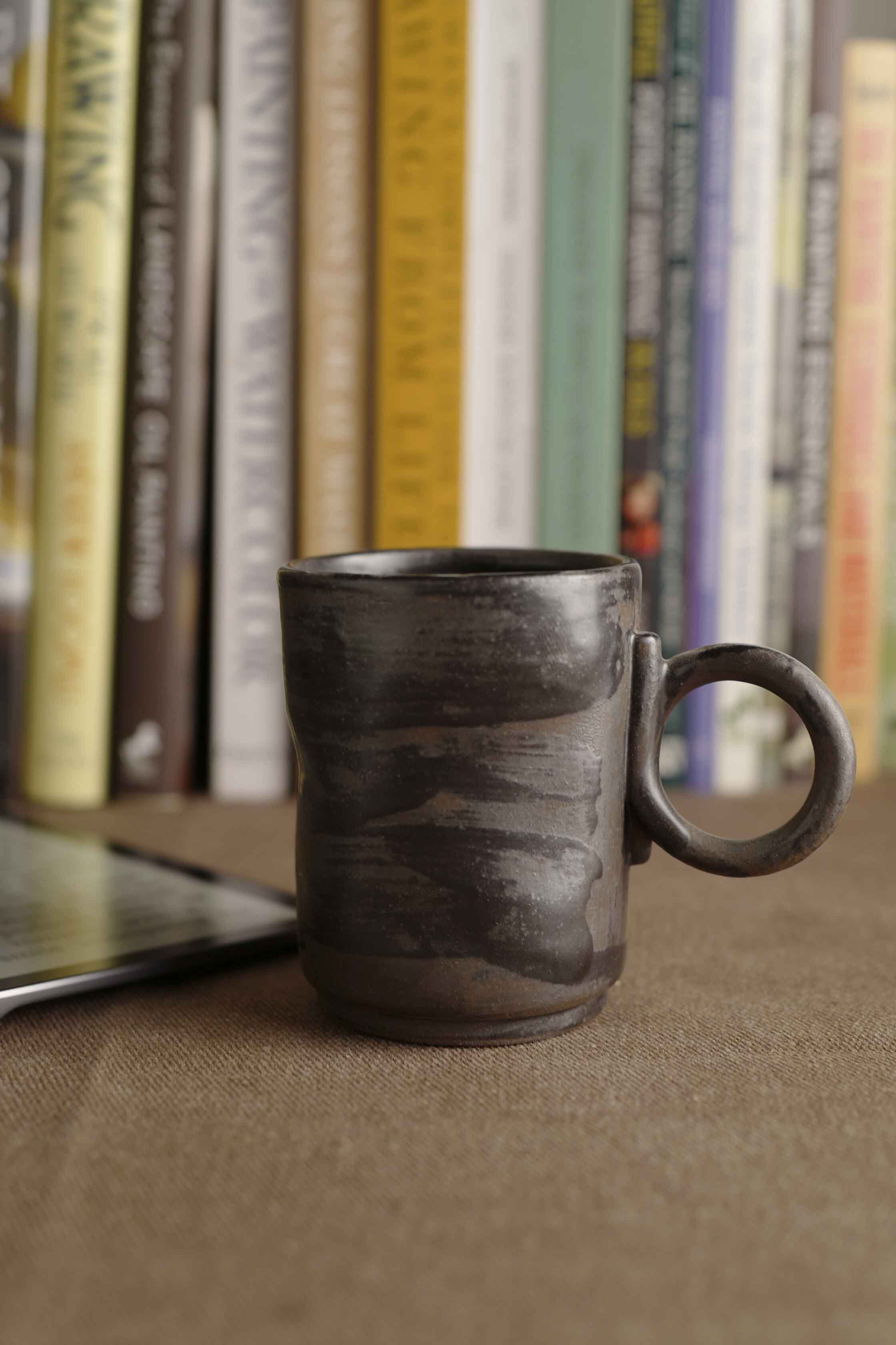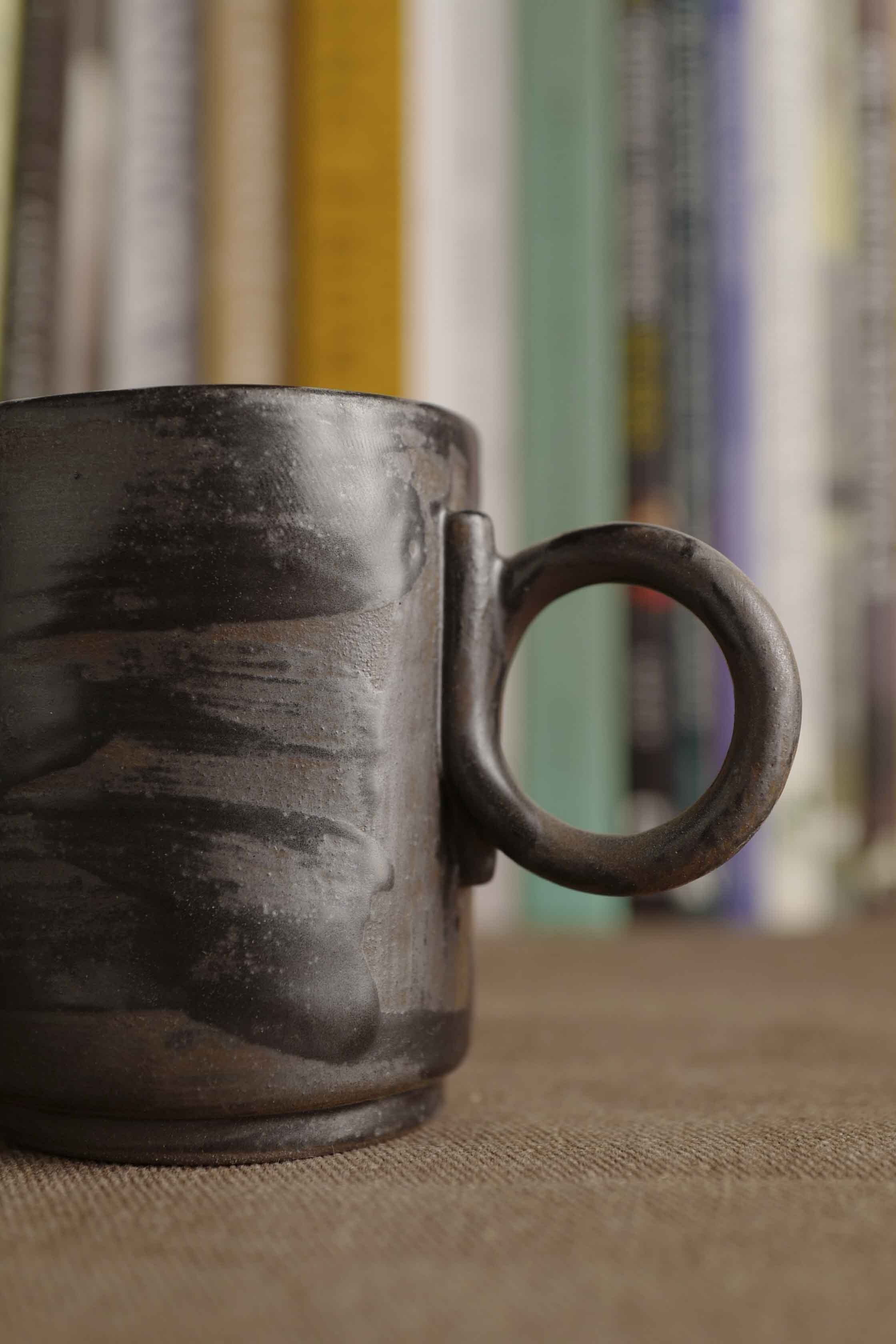 160 ml in size, 7.7 cm in height, dishwasher-safe. Amazing smoky dark glaze - magical reactions produced by the temperature changes in the kiln during firing. The irregular shape and silky glaze surface. Perfect for morning espresso or macchiato. Only 2 was made in each batch.