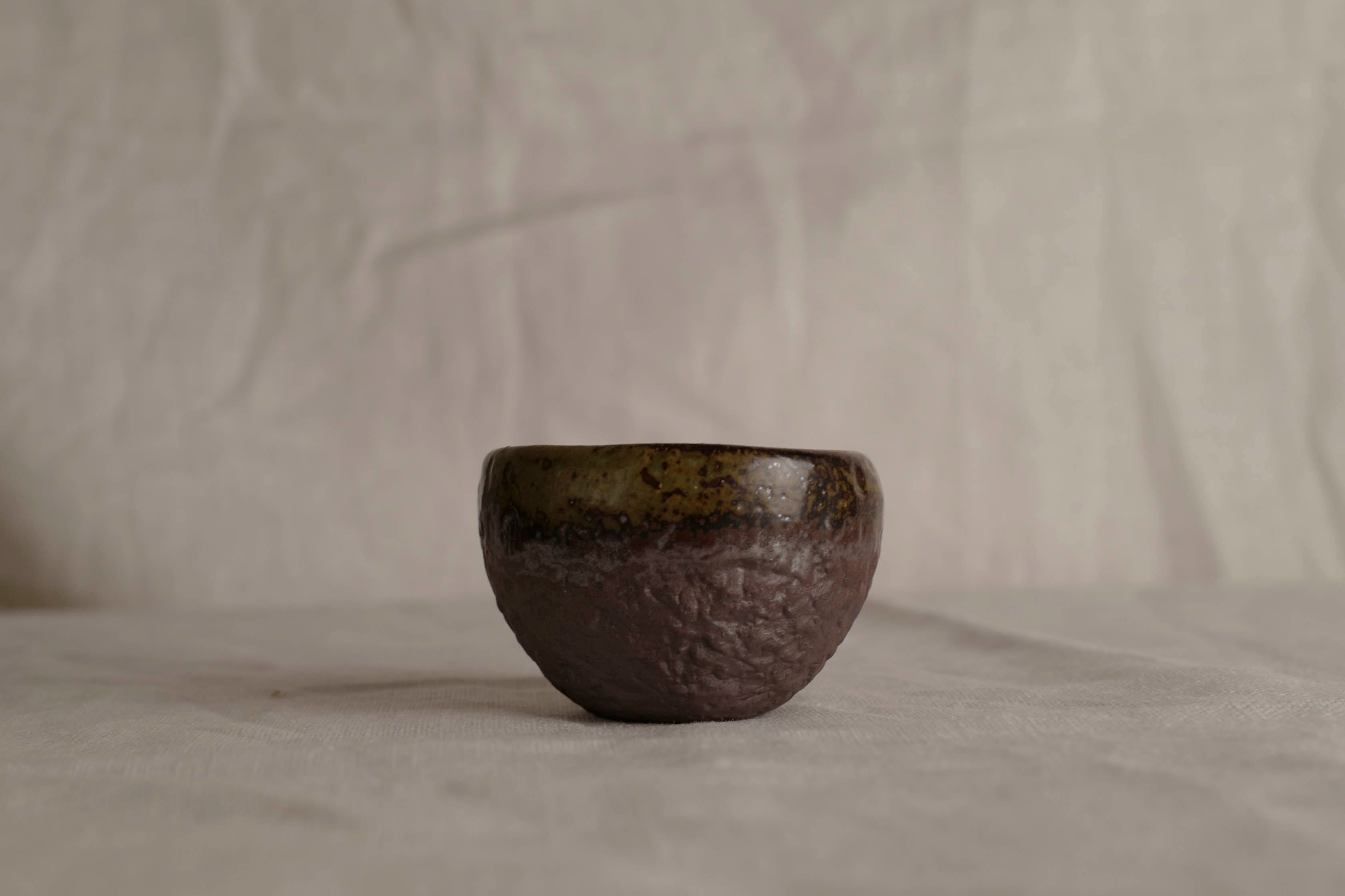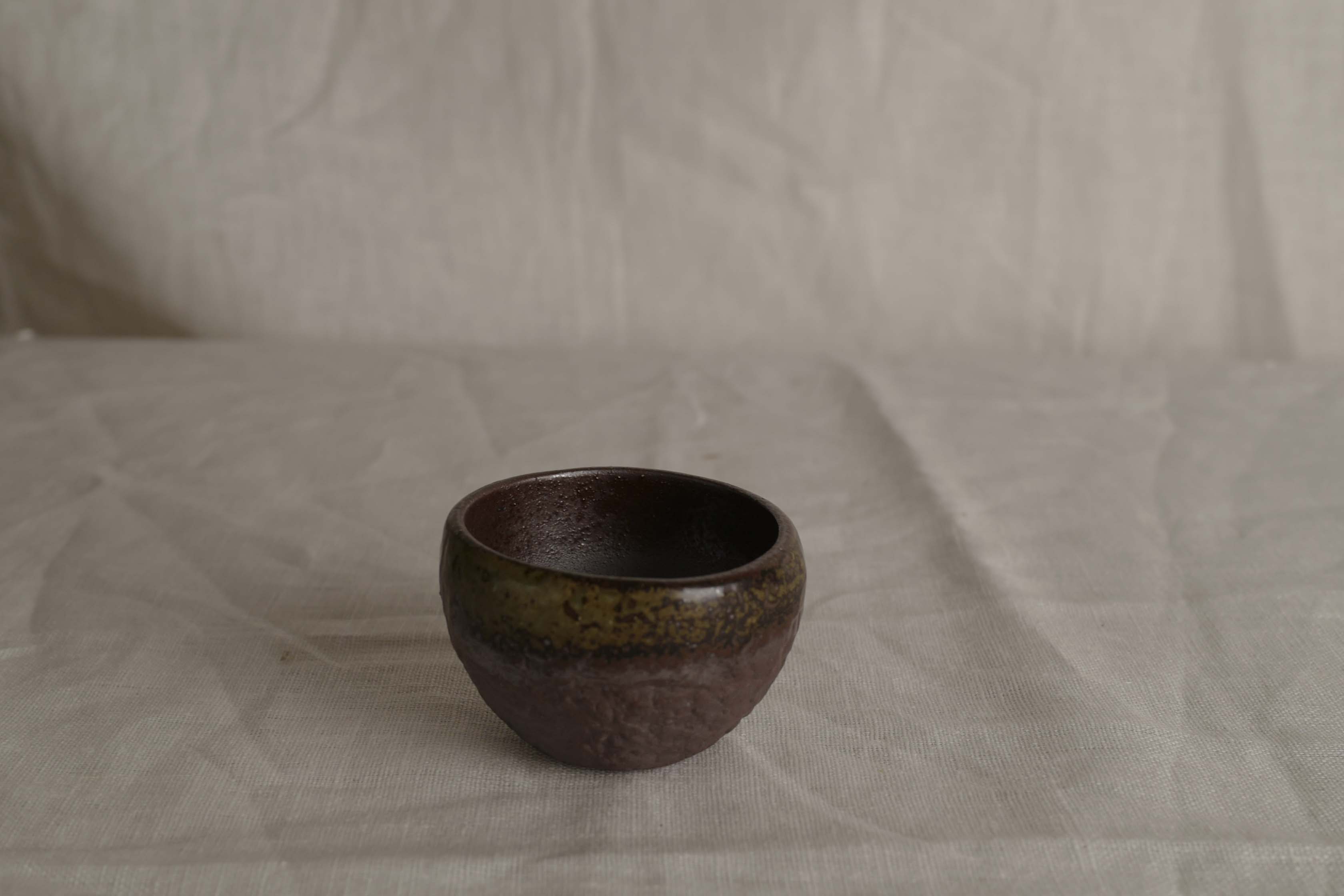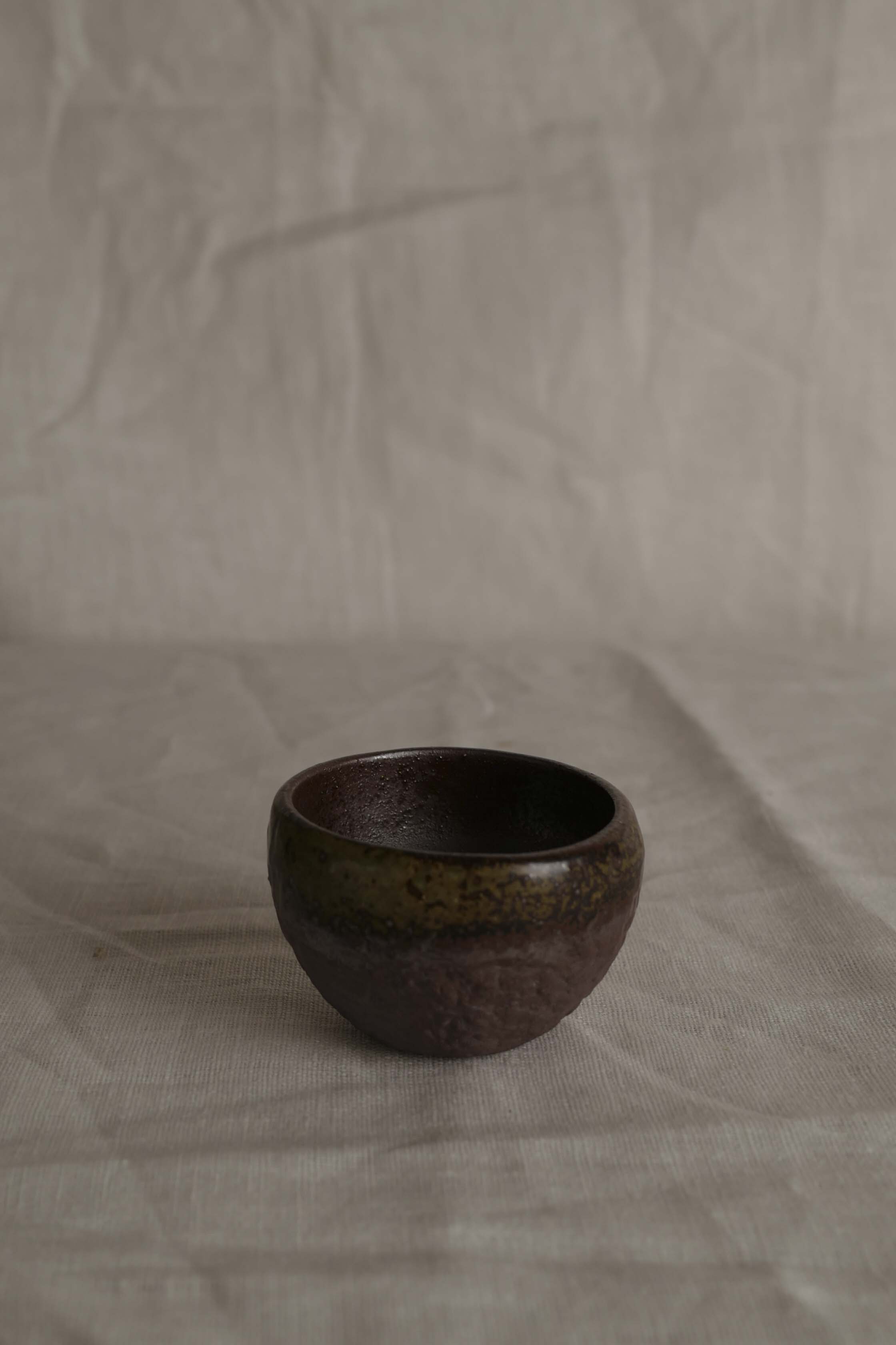 100 ml in size and dishwasher-safe.  Egg-shell ceramics thin body with a rim of glaze. Color Dark Brown with a special touch of glaze.  Slightly rough surface. Perfect for morning espresso or macchiato. Only 4 was made in this batch.