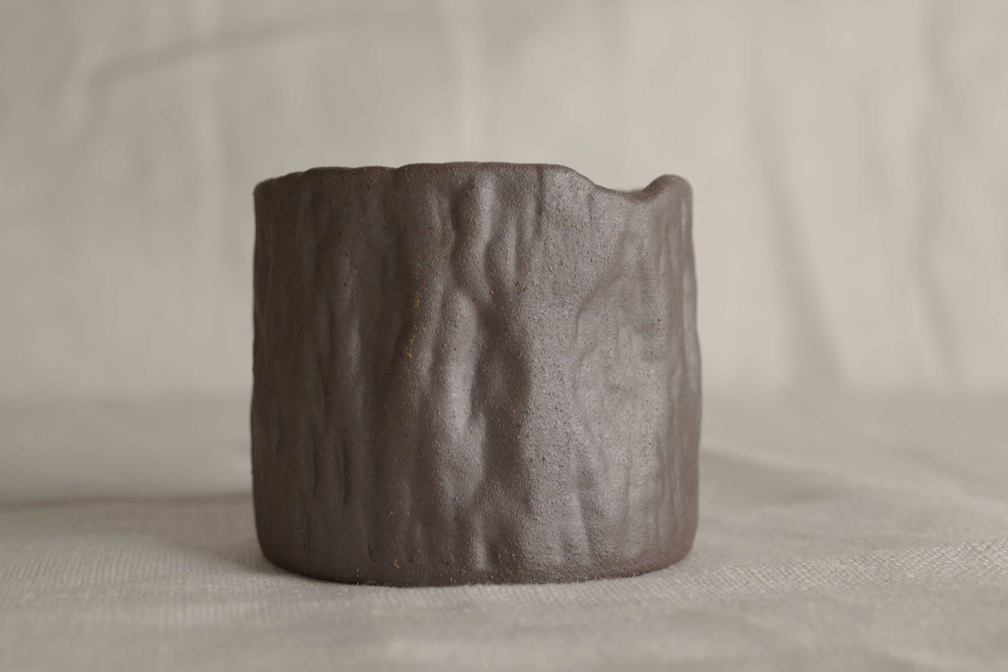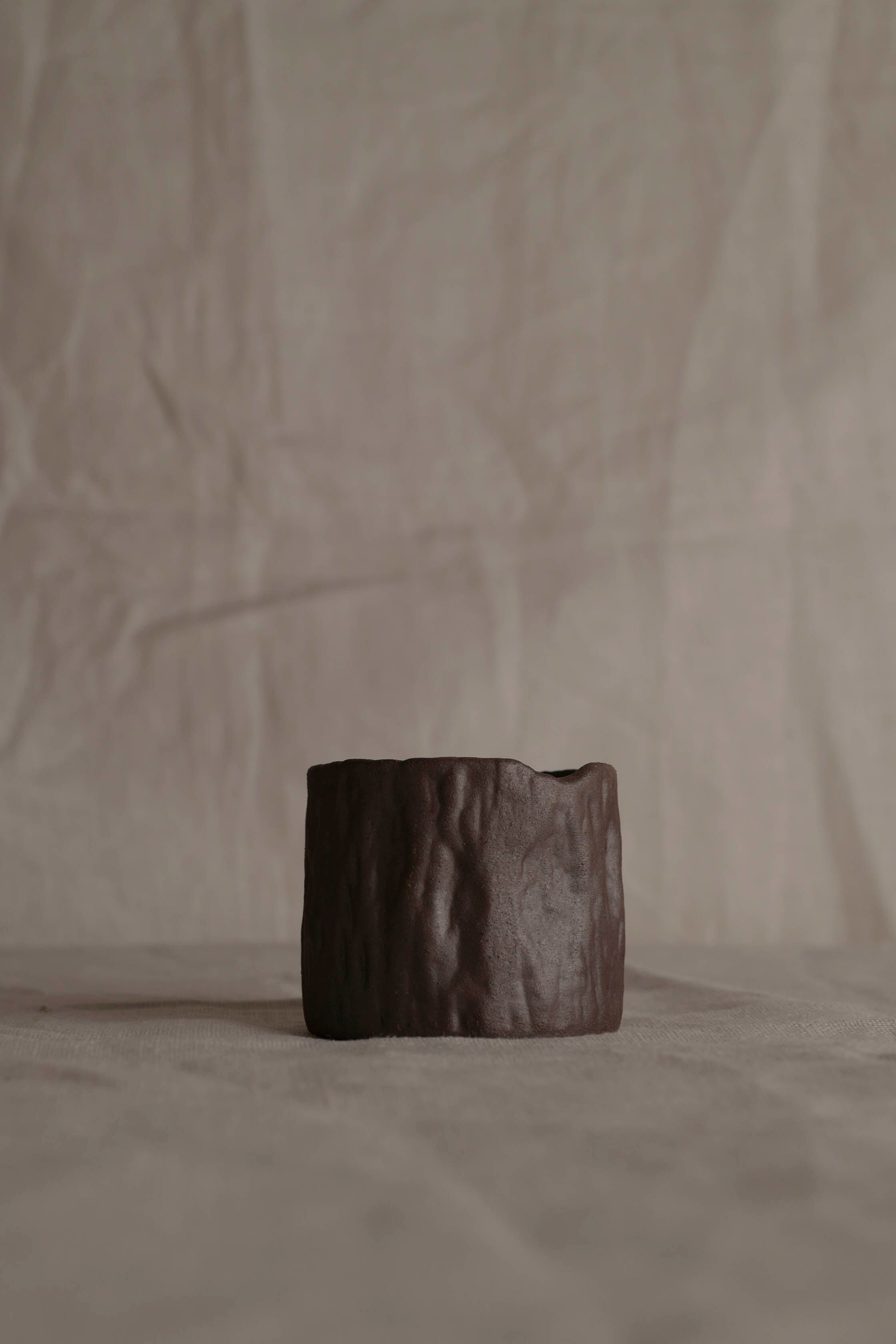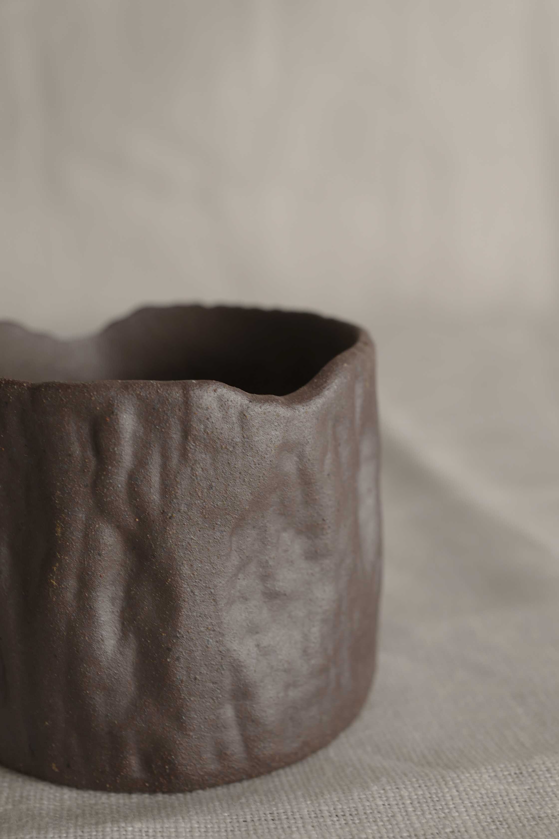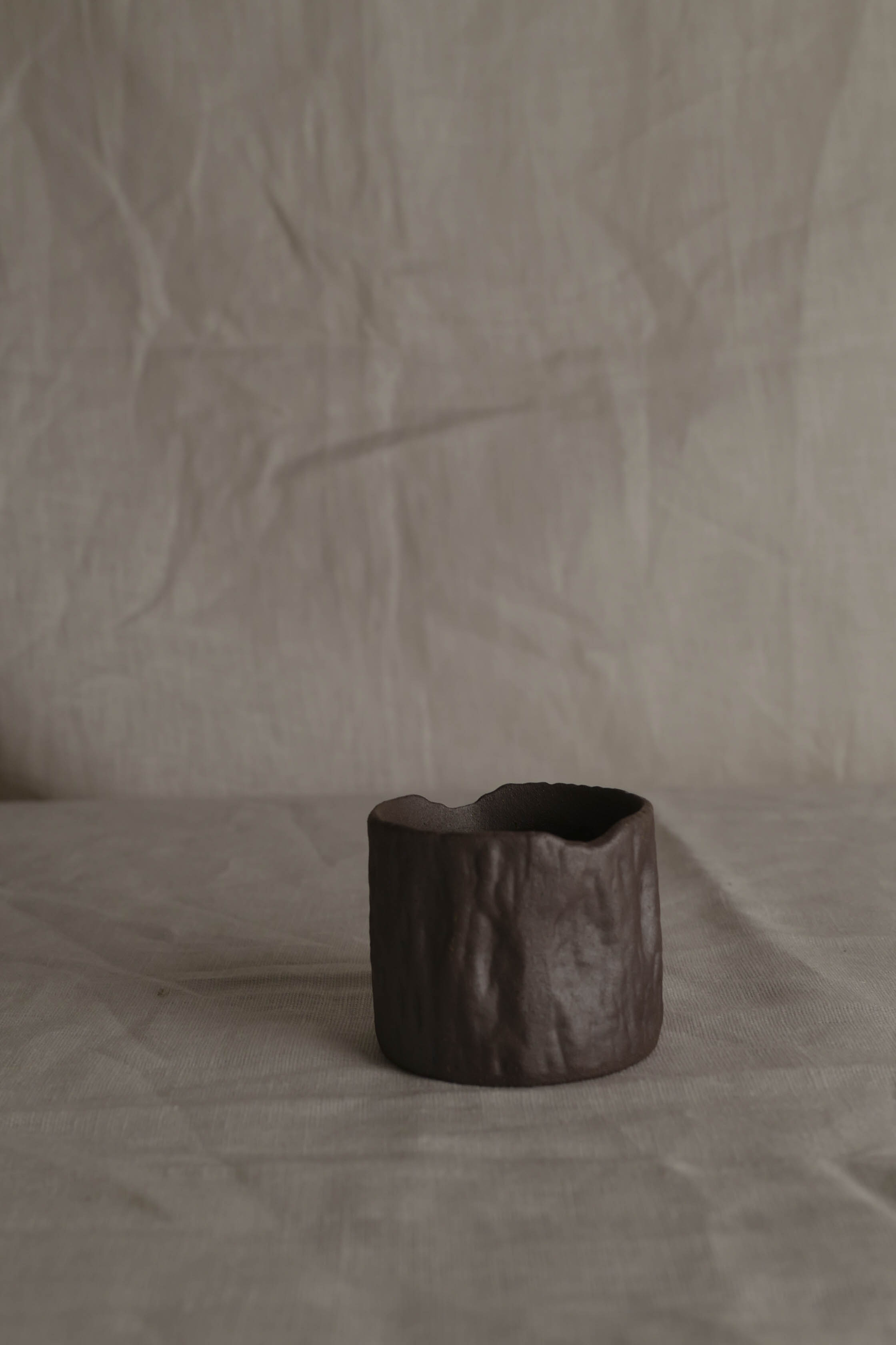 120 ml in size and dishwasher-safe. Egg-shell ceramics thin body. Color Dark Brown with raw surface. Slightly rough surface. Perfect for morning espresso or macchiato. Only 2 was made in this batch.